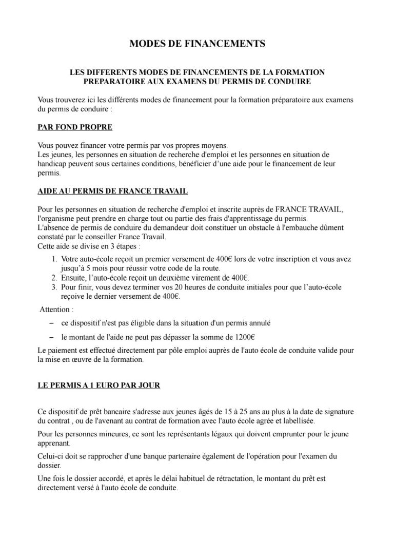 MODALITES DE FINANCEMENTS